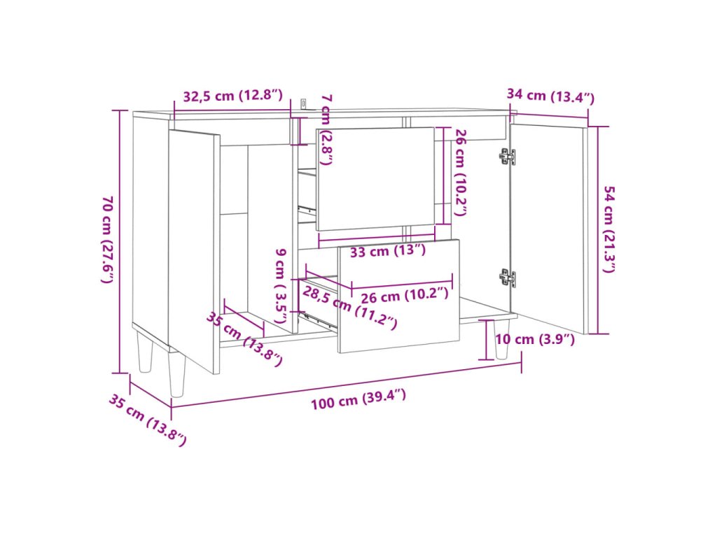 - Rozměry: 101 x 35 x 70 cm (Š x H x V)