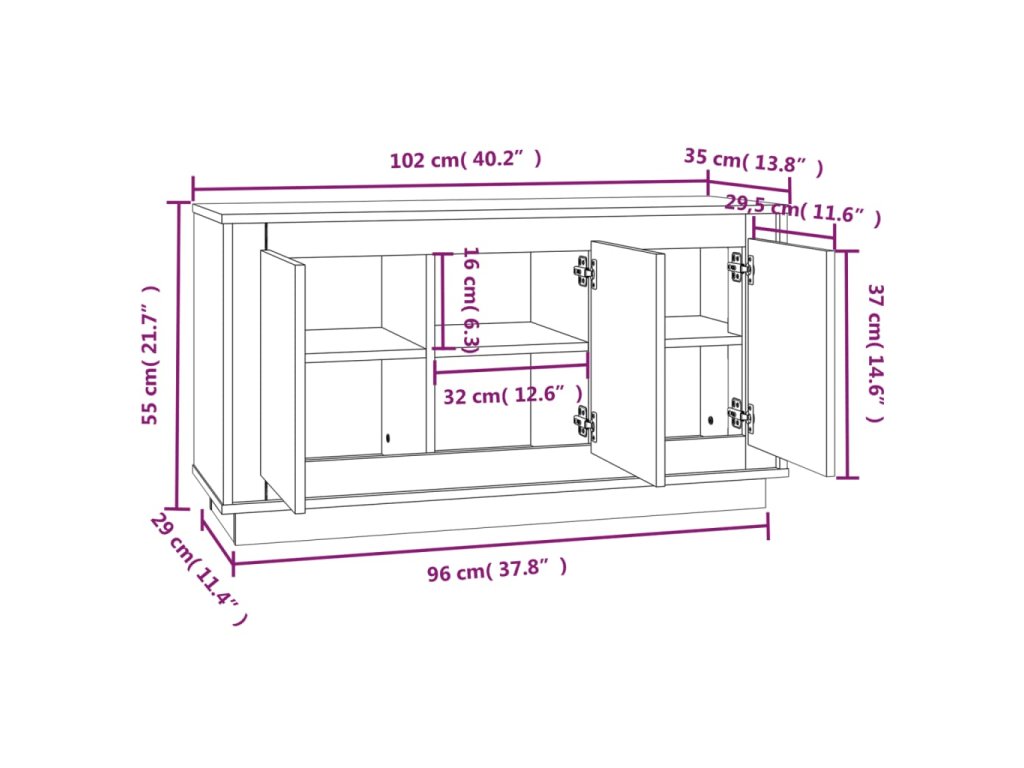 - Rozměry: 102 x 35 x 55 cm (Š x H x V)
