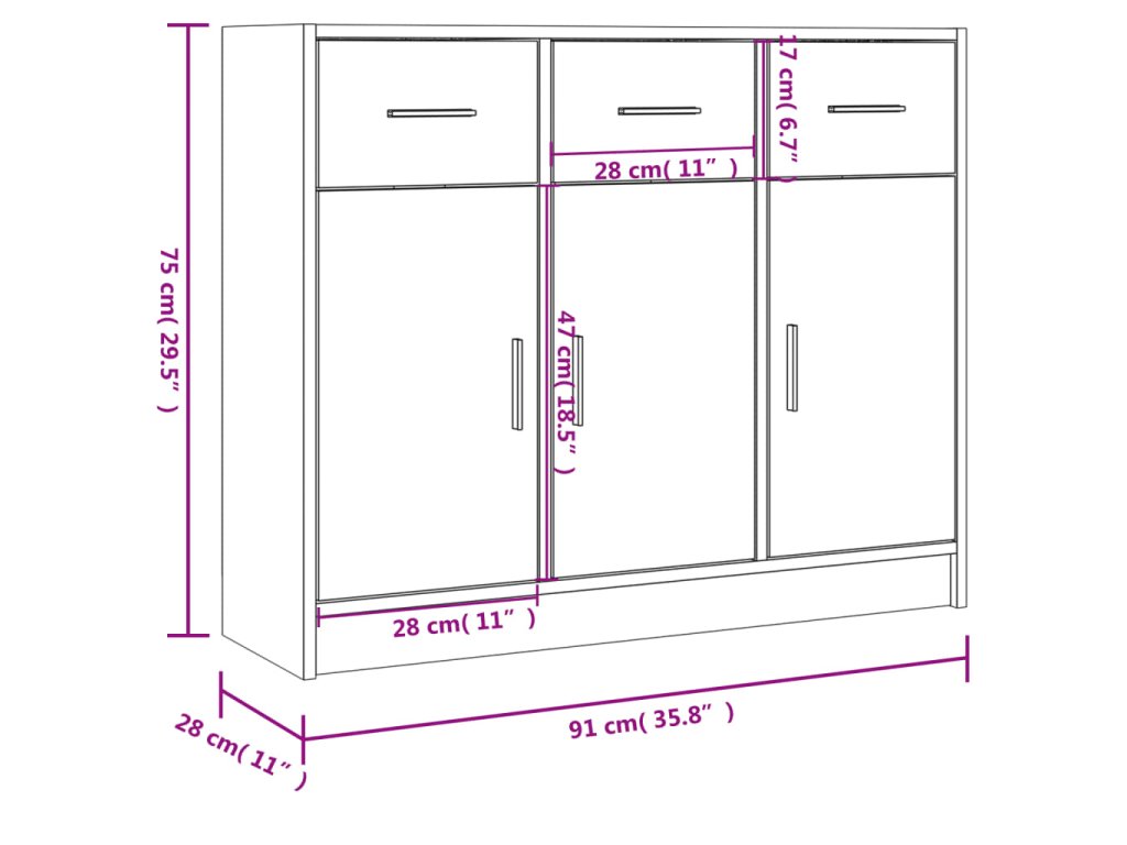 - Rozměry: 91 x 28 x 75 cm (Š x H x V)
