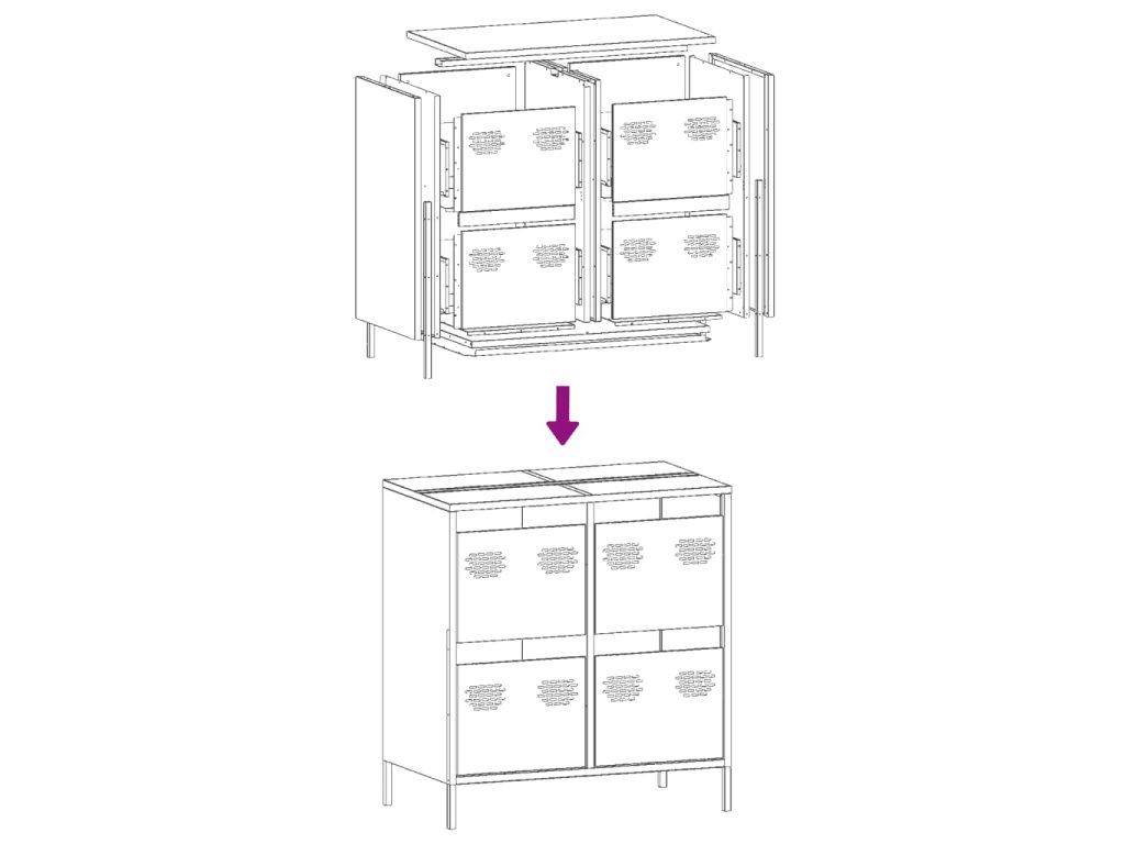 - Snadná údržba: Díky hladkému povrchu se příborník snadno čistí vlhkým hadříkem a vyžaduje minimum údržby.