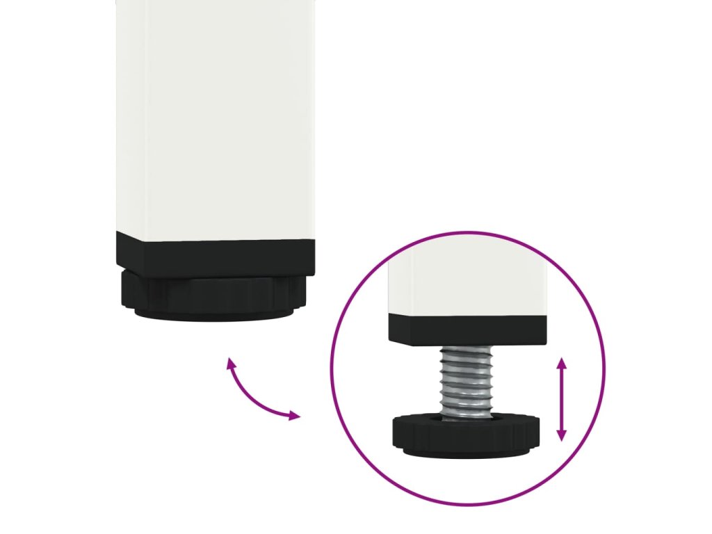 - Nastavitelné šroubovací nožičky: Tato úložná skříňka je vybavena čtyřmi nastavitelnými šroubovými nožičkami, které vyrovnávají nerovnosti podlahy a zajišťují stabilitu a rovnováhu.