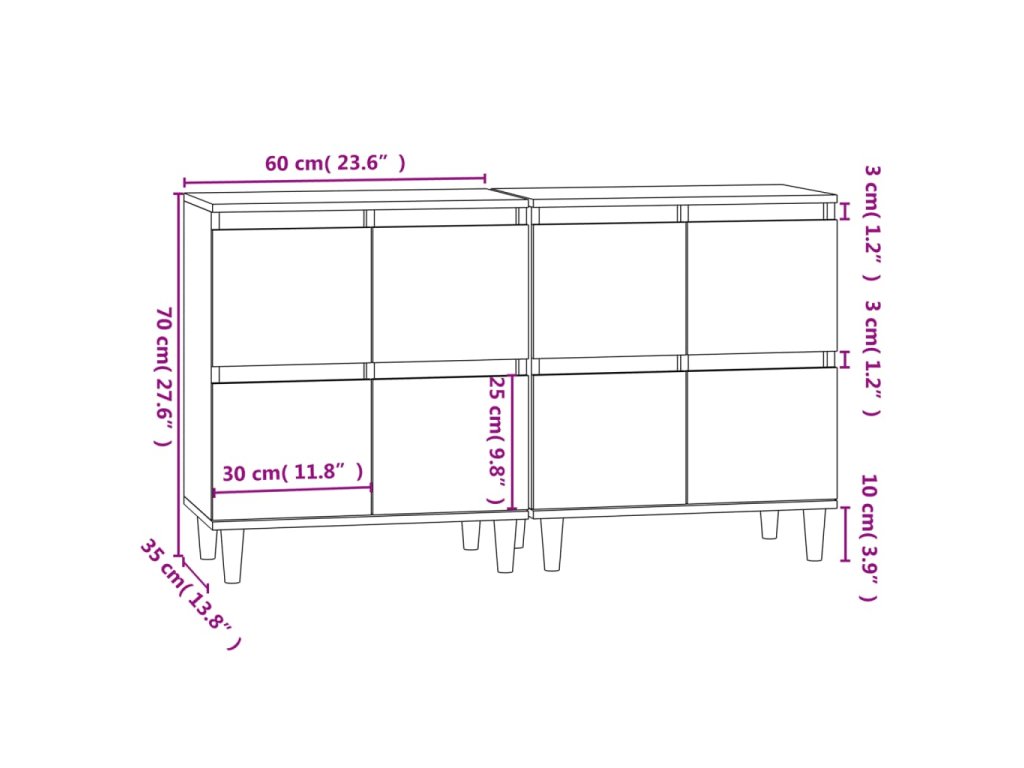 Příborníky 2 ks bílé 60 x 35 x 70 cm kompozitní dřevo 3185751