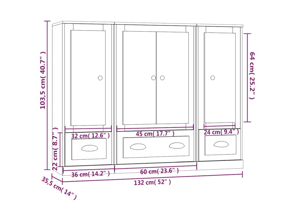 - Celkové rozměry: 132 x 35,5 x 103,5 cm (D x Š x V)