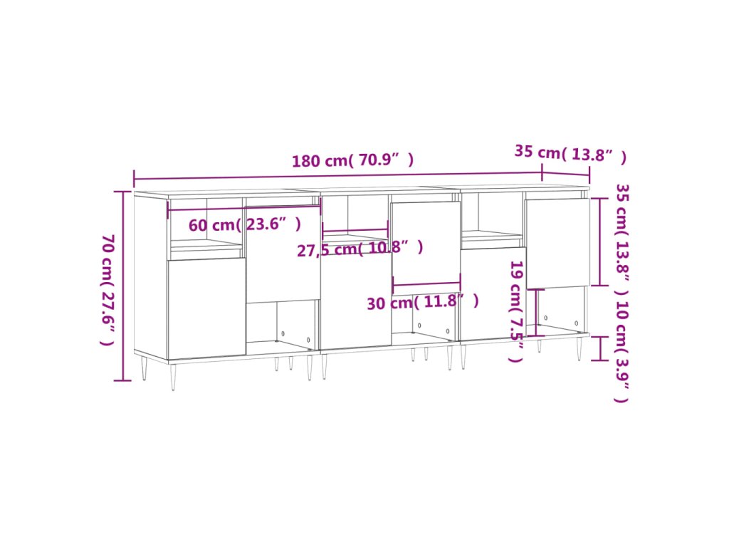 Příborníky 3 ks kouřový dub kompozitní dřevo 3190146