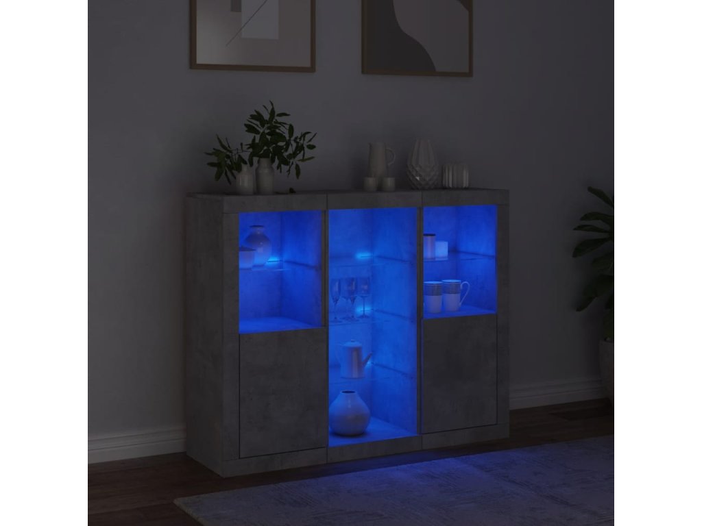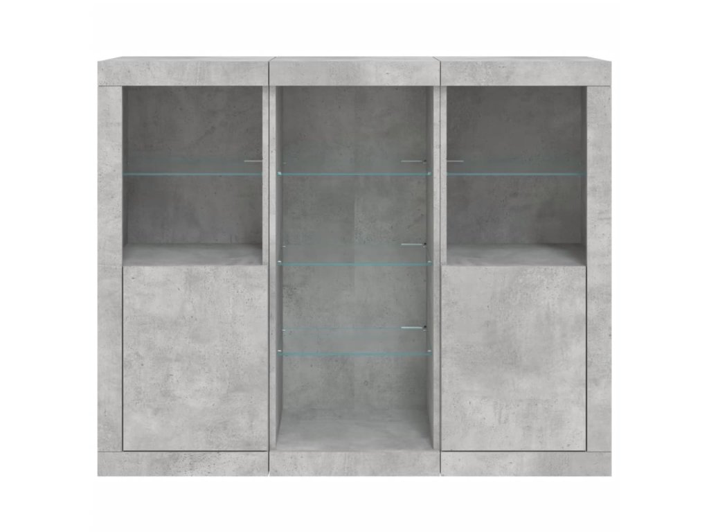 Příborníky s LED osvětlením 3 ks betonově šedé kompozitní dřevo 3209124