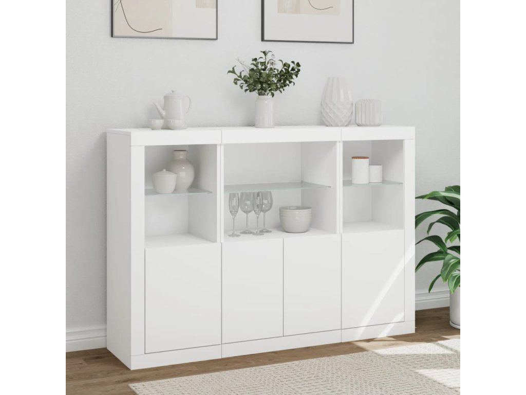 Příborníky s LED osvětlením 3 ks bílé kompozitní dřevo 3209107
