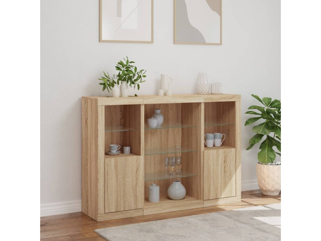Příborníky s LED osvětlením 3 ks dub sonoma kompozitní dřevo 3209130