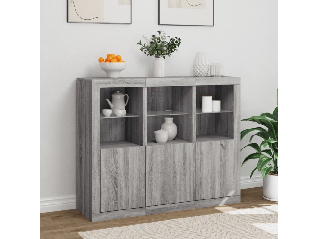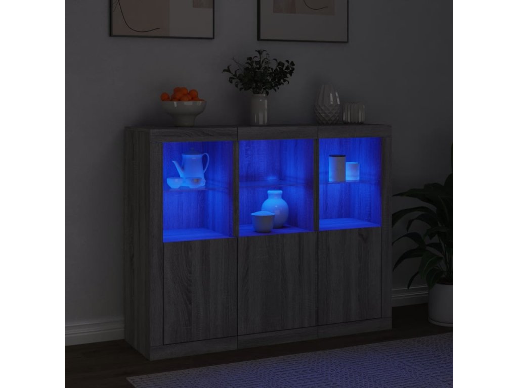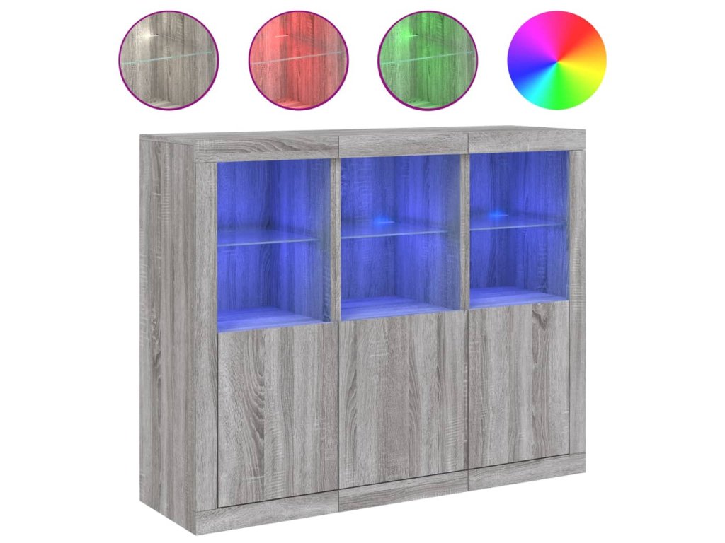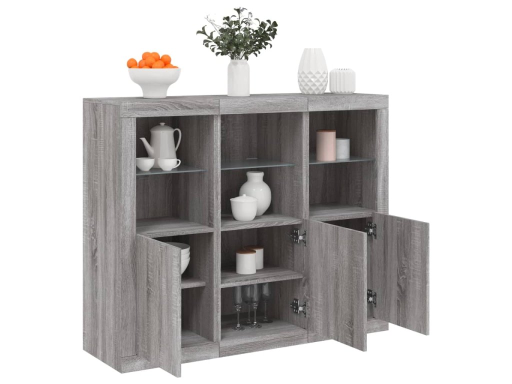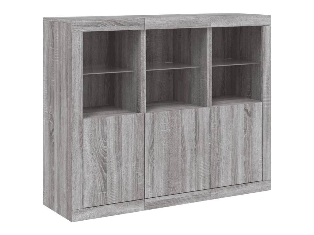 Příborníky s LED osvětlením 3 ks šedé sonoma kompozitní dřevo 3209105