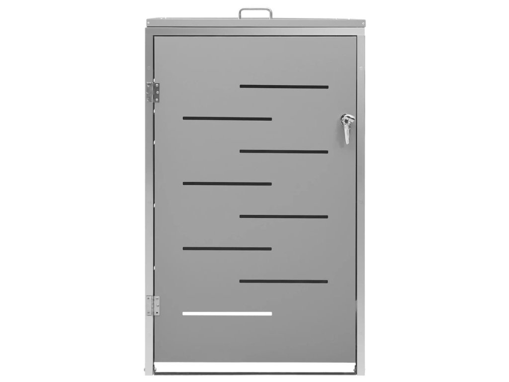 Tento přístřešek na popelnice je vyroben z pozinkovaného ocelového panelu a rámu z nerezové oceli, takže je mimořádně robustní a odolný proti korozi. Dutá konstrukce umožňuje cirkulaci vzduchu a zabraňuje, aby v popelnicích vznikal nepříjemný zápach. Uzamykací systém zároveň zajišťuje bezpečné uložení odpadků. Praktické víko a pružiny navíc usnadňují vkládání a vyjímání popelnic.