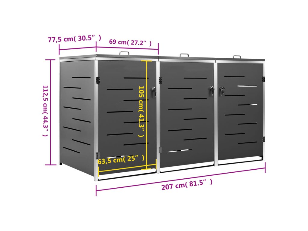 Přístřešek na tři popelnice 207 x 77,5 x 112,5 cm nerezová ocel 149556