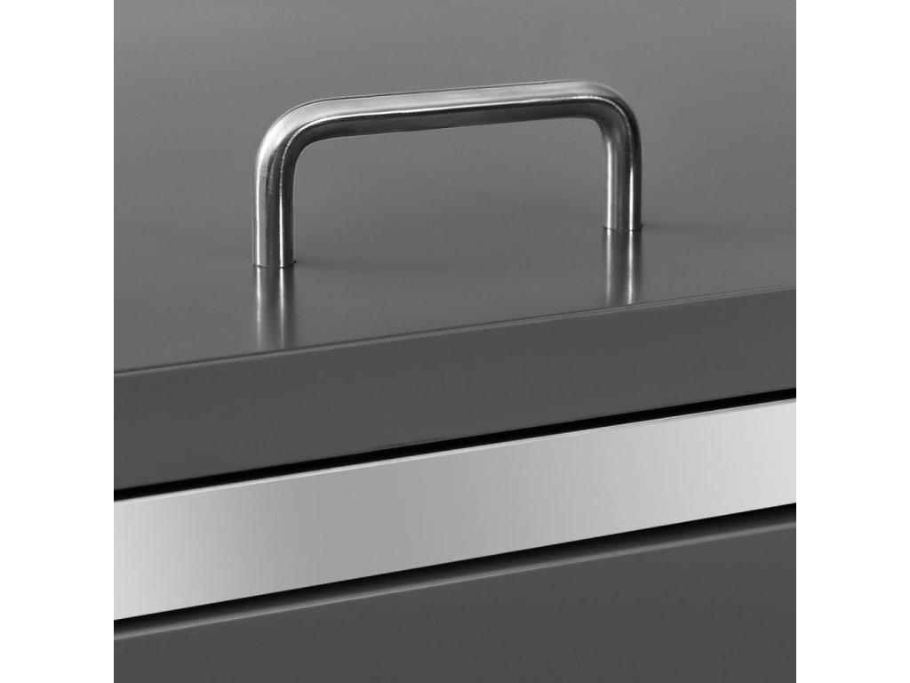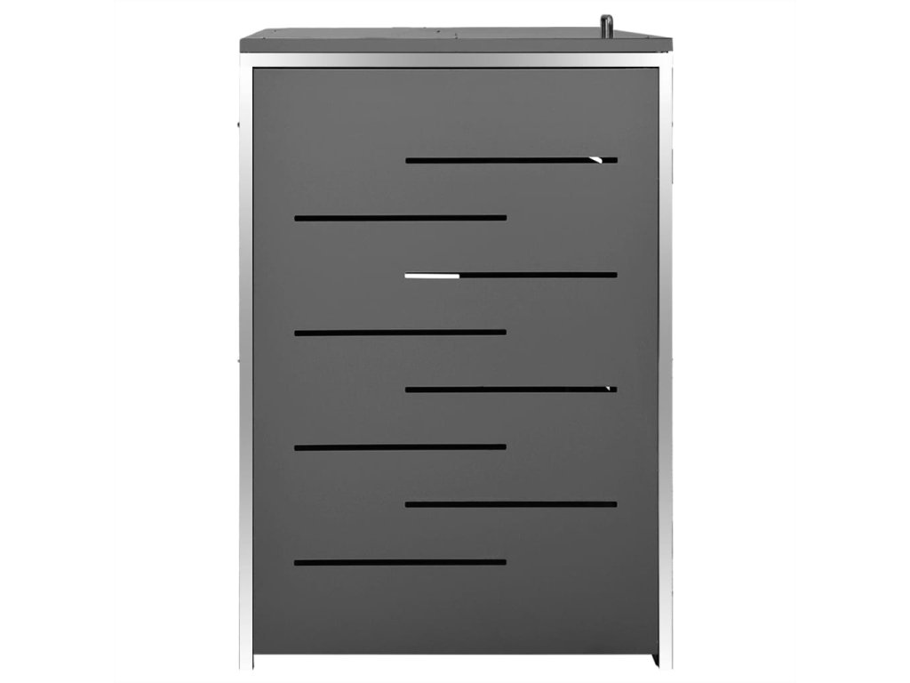 Tento přístřešek na popelnice je vyroben z pozinkovaného ocelového panelu a rámu z nerezové oceli, takže je mimořádně robustní a odolný proti korozi. Dutá konstrukce umožňuje cirkulaci vzduchu a zabraňuje, aby v popelnicích vznikal nepříjemný zápach. Uzamykací systém zároveň zajišťuje bezpečné uložení odpadků. Praktické víko a pružiny navíc usnadňují vkládání a vyjímání popelnic.