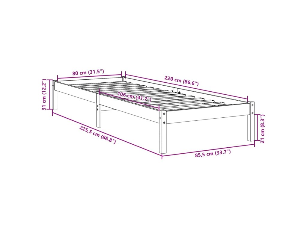 - Rozměry: 215,5 x 85,5 x 31 cm (D x Š x V)