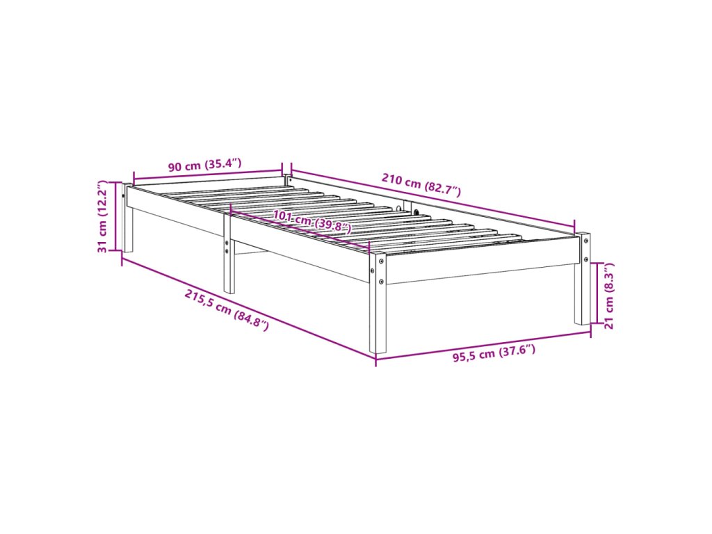 Prodloužený rám postele bez matrace bílý 90 x 210 cm borovice 852403