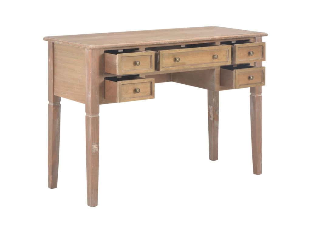Tento odolný psací stůl má pět velkých zásuvek na psací potřeby, které vám poskytnou dost místa na uložení a uspořádání vašich složek, papírů, dokumentů a dalších kancelářských potřeb. Stolní deska navíc nabízí velký prostor na umístění dekoračních předmětů a dalších osobních věcí.