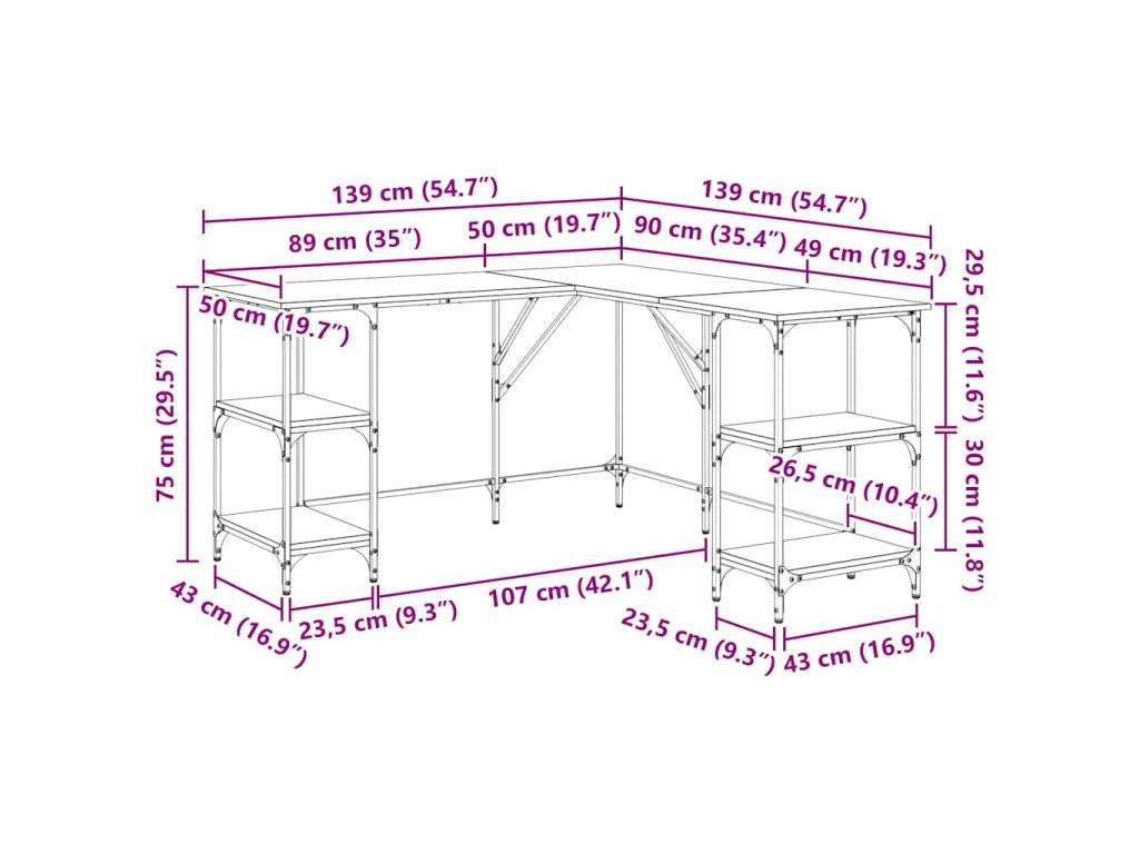 - Design ve tvaru L: Psací stůl má tvar písmene L, takže se snadno vejde do jakéhokoli rohu a maximálně využije váš omezený prostor.