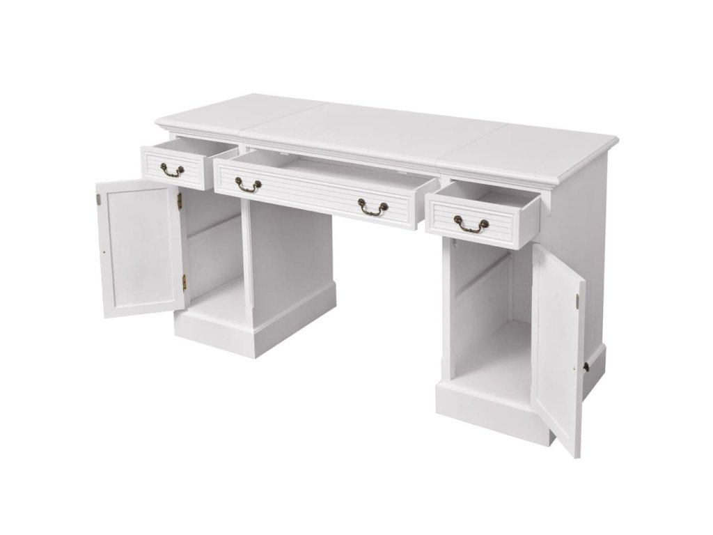 Tento psací stůl na dvou podstavcích s jednoduchým, ale elegantním designem dodá romantický dojem vaší studovně nebo ložnici.