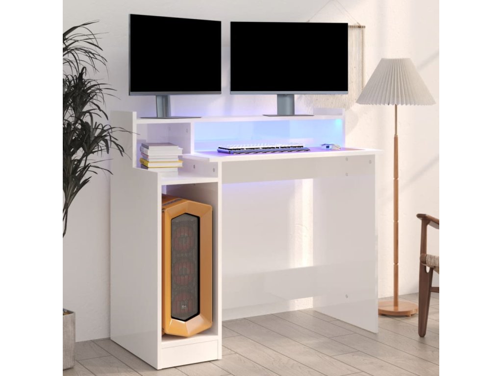 Psací stůl s LED lesklý bílý 97 x 45 x 90 cm kompozitní dřevo 805558