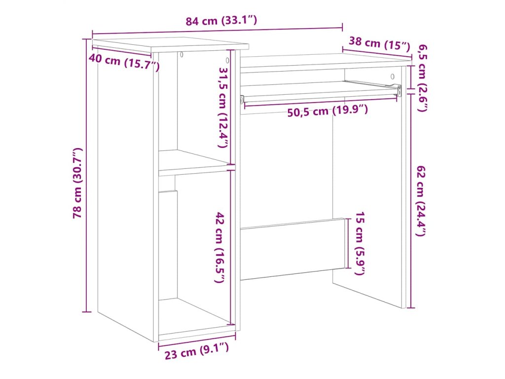 - Dostatek úložného prostoru: Počítačový stůl je vybaven univerzálním úložným prostorem a přihrádkami, které vyhovují různým požadavkům na skladování a udržují váš prostor uspořádaný a čistý.