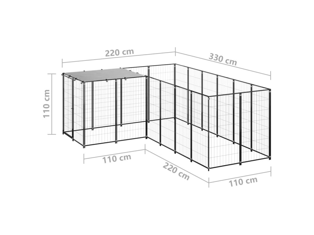 Psí kotec černý 4,84 m² ocel 3082211