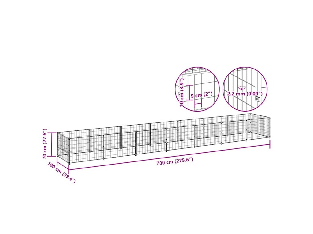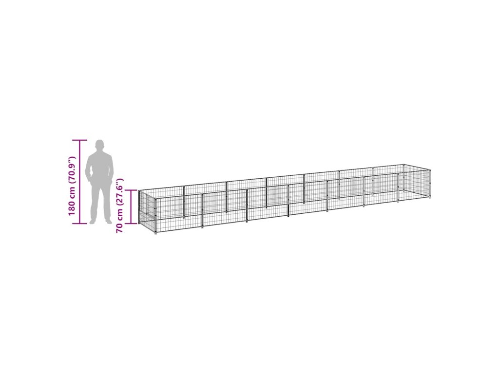 Psí kotec černý 7 m² ocel 3082097