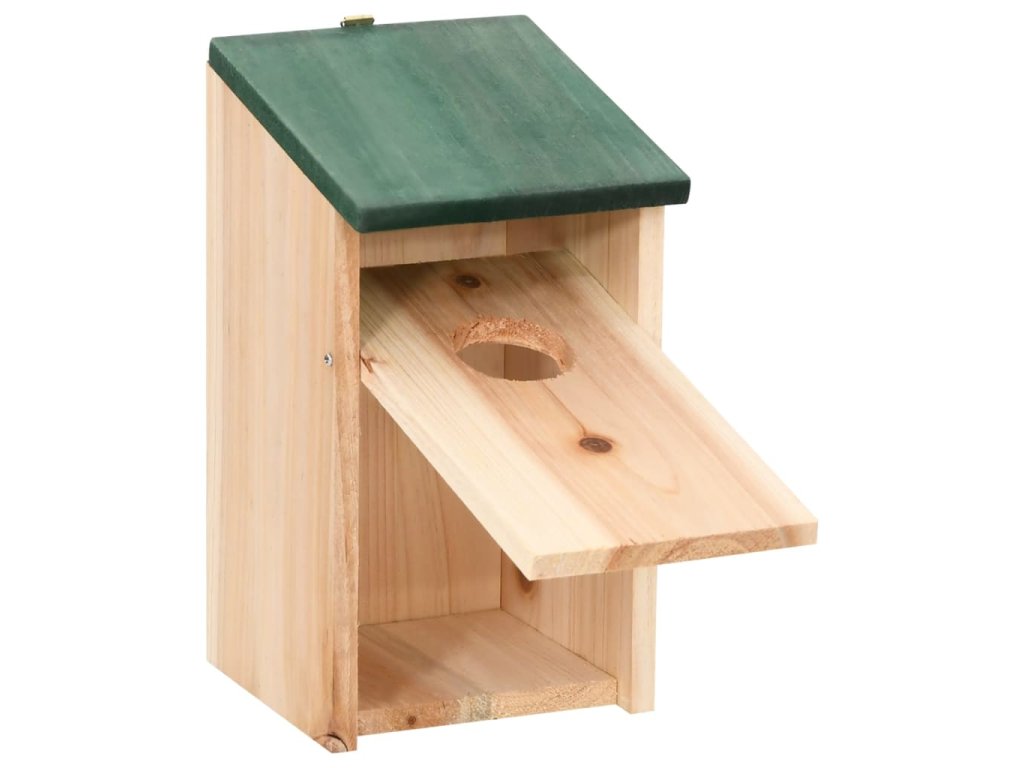 Se svou přírodní barvou a tmavě zelenou stříškou bude nejen perfektním místem pro hnízdění ptáků, ale také skvělou ozdobou vaší zahrady. Budka je vybavená kovovými háky, takže ji snadno zavěsíte kdekoliv na vaší zahradě.