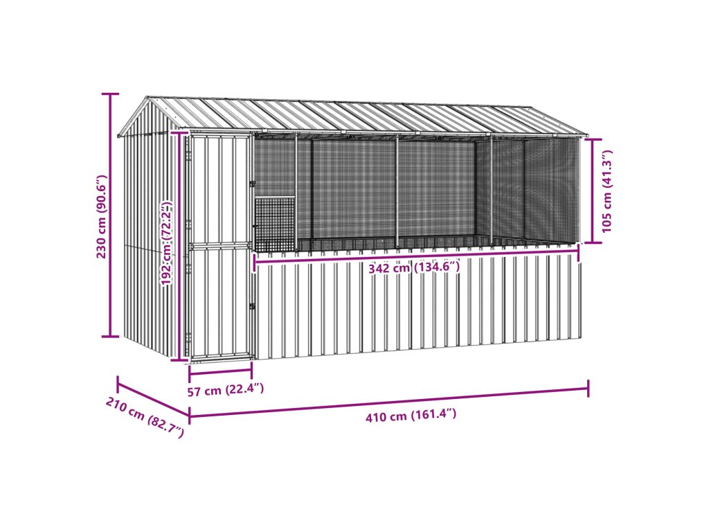 Ptačí klec Antracit 410 x 210 x 230 cm Pozinkovaná ocel 3325171