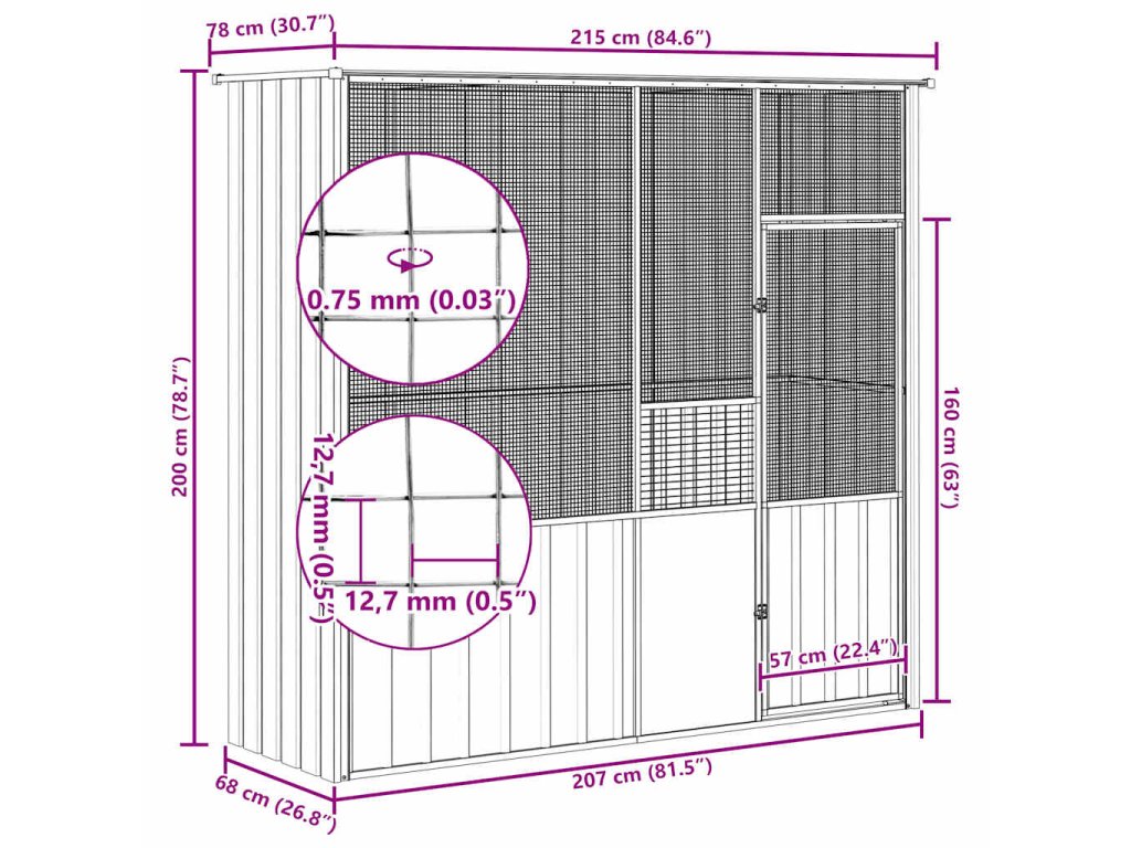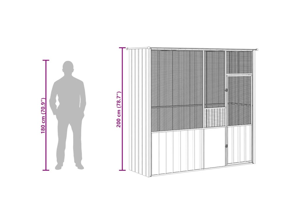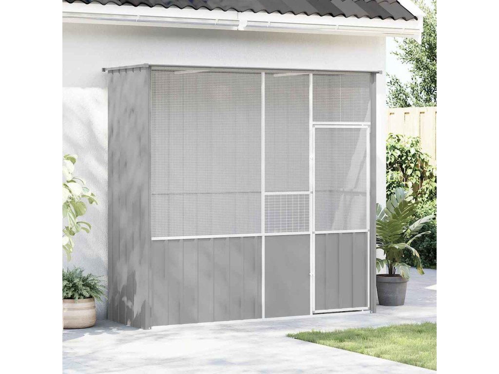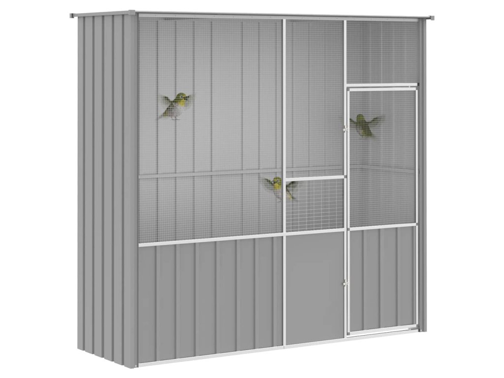 Ptačí klec šedá 215 x 78 x 200 cm pozinkovaná ocel 172345