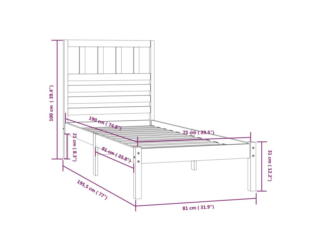 - Tento rám postele je vhodný pro matrace o rozměrech 75 x 190 cm (2FT6 Small Single)