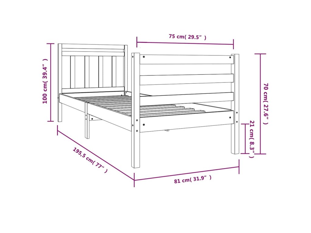 - Tento rám postele je vhodný pro matrace o rozměrech 75 x 190 cm (2FT6 Small Single)