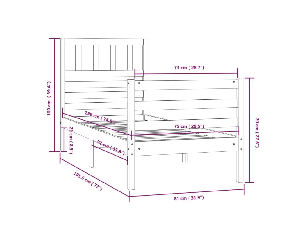 - Tento rám postele je vhodný pro matrace o rozměrech 75 x 190 cm (2FT6 Small Single)