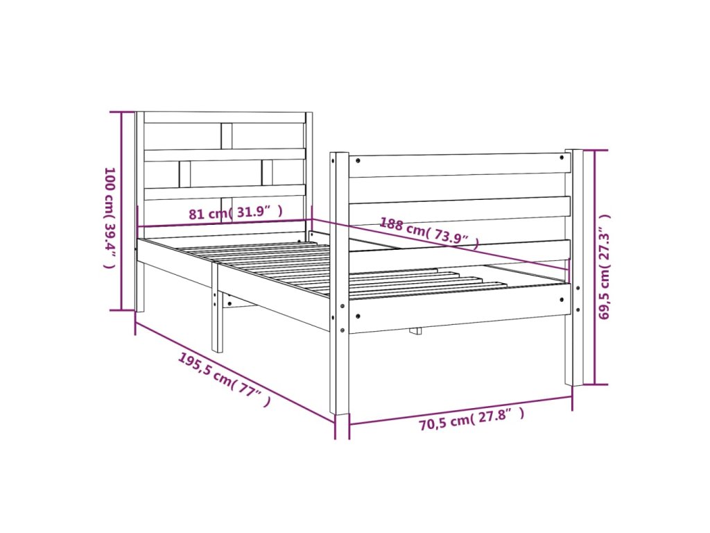 - Tento rám postele je vhodný pro matrace o rozměrech 75 x 190 cm (2FT6 Small Single)