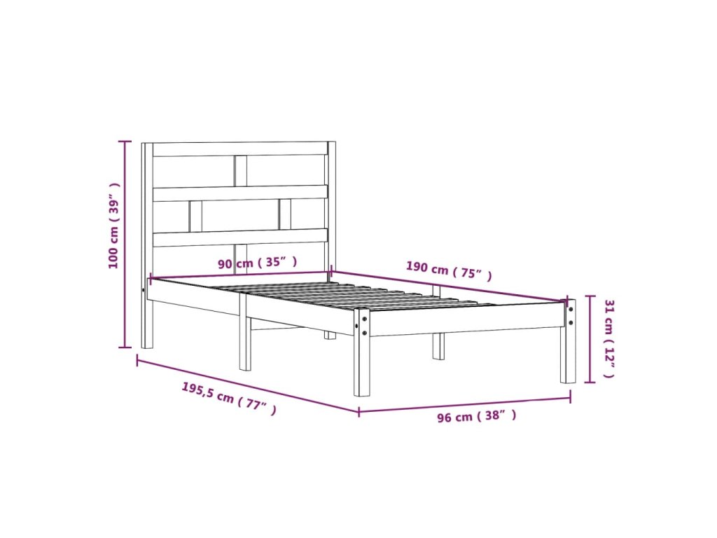 - Tento rám postele je vhodný pro matrace o rozměrech 90 x 190 cm (3FT Single).