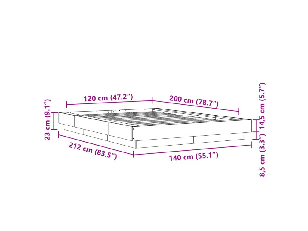 - Celkové rozměry: 212 x 140 x 23 cm (D x Š x V)