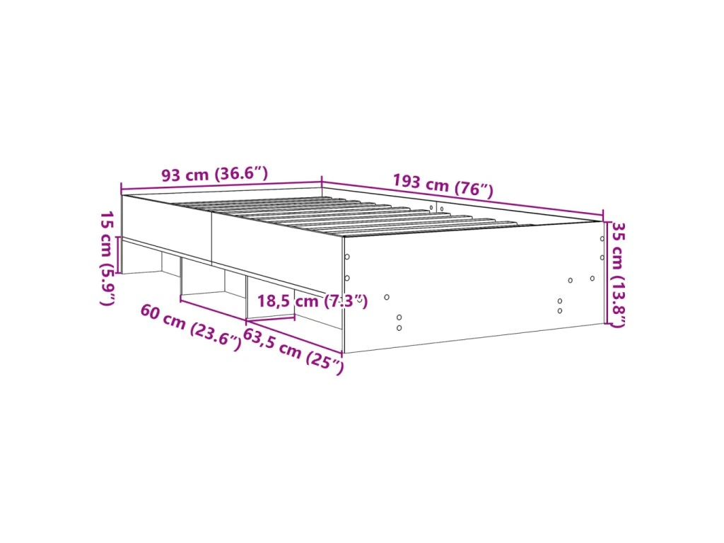 - Celkové rozměry: 193 x 93 x 35 cm (D x Š x V)