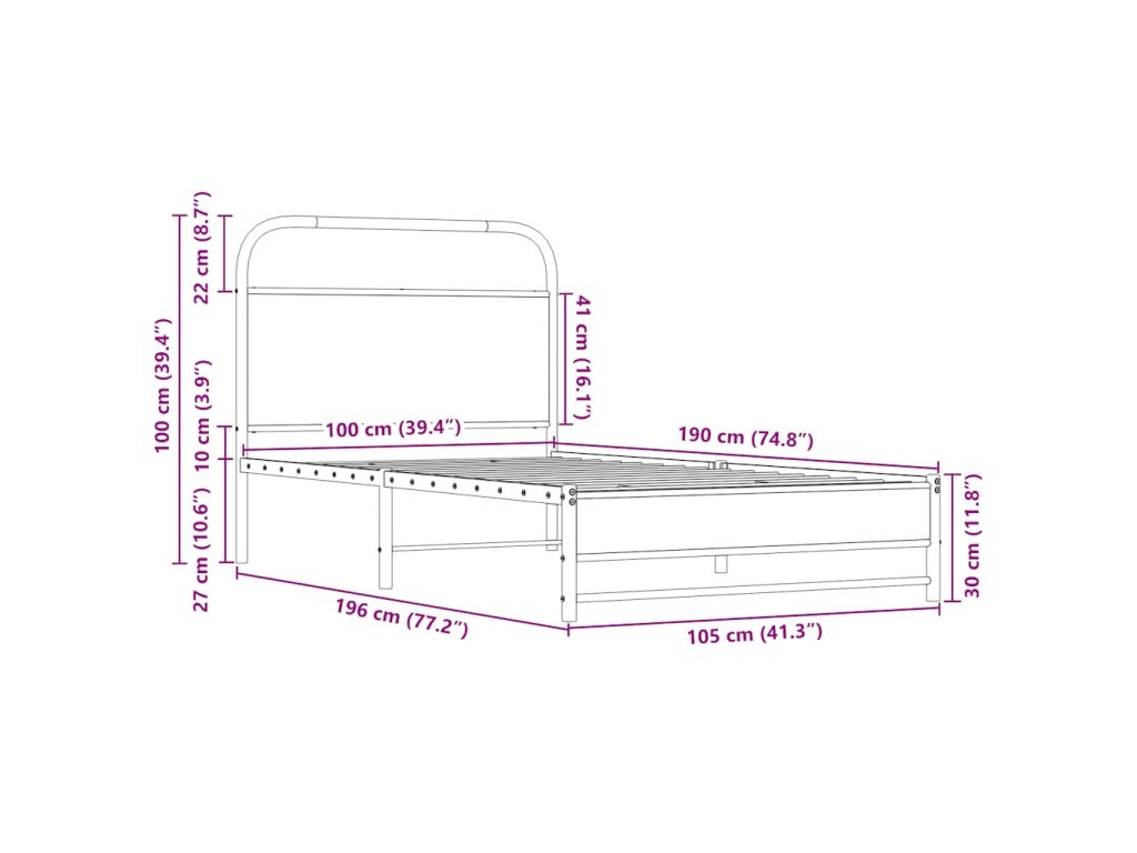 Rám postele bez matrace 100x190 cm dub sonoma kompozitní dřevo 4100422