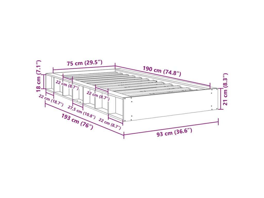 - Vhodné rozměry matrace: 75 x 190 cm (Š x D) (matrace není součástí balení)