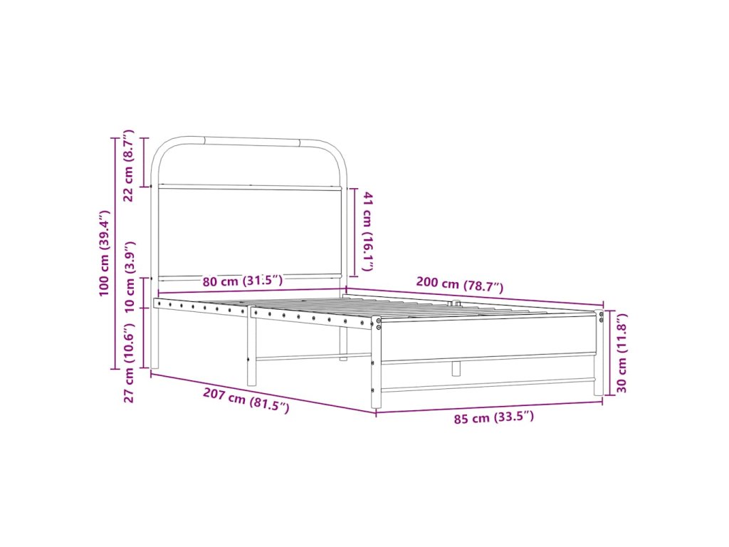 Rám postele bez matrace 80x200 cm dub sonoma kompozitní dřevo 4100419