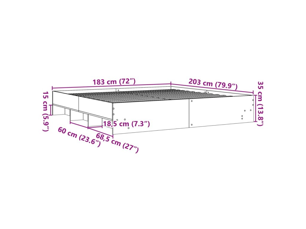 Rám postele bez matrace Betonová šedá Dřevěné konstrukce 3295635