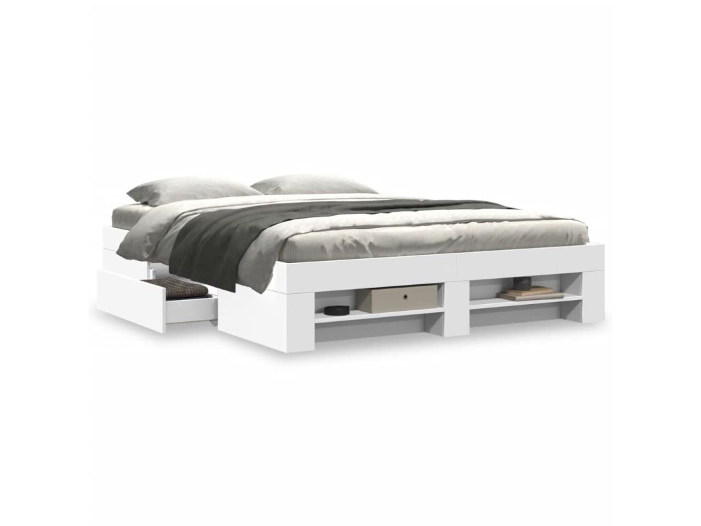 - Úložná funkce: Tento rám postele je vybaven zásuvkami a otevřenými přihrádkami, které vám poslouží k přehlednému uložení časopisů, knih, hraček a dalších drobných předmětů.