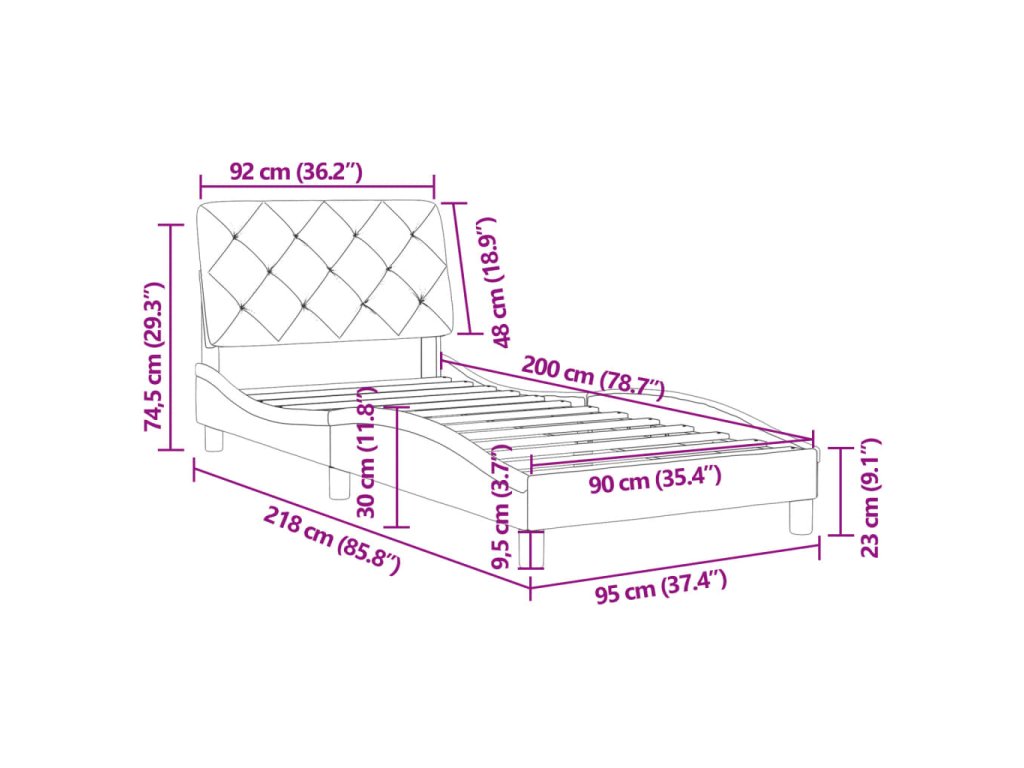 - Vhodná velikost matrace: 90 x 200 cm (Š x D) (matrace není součástí balení)