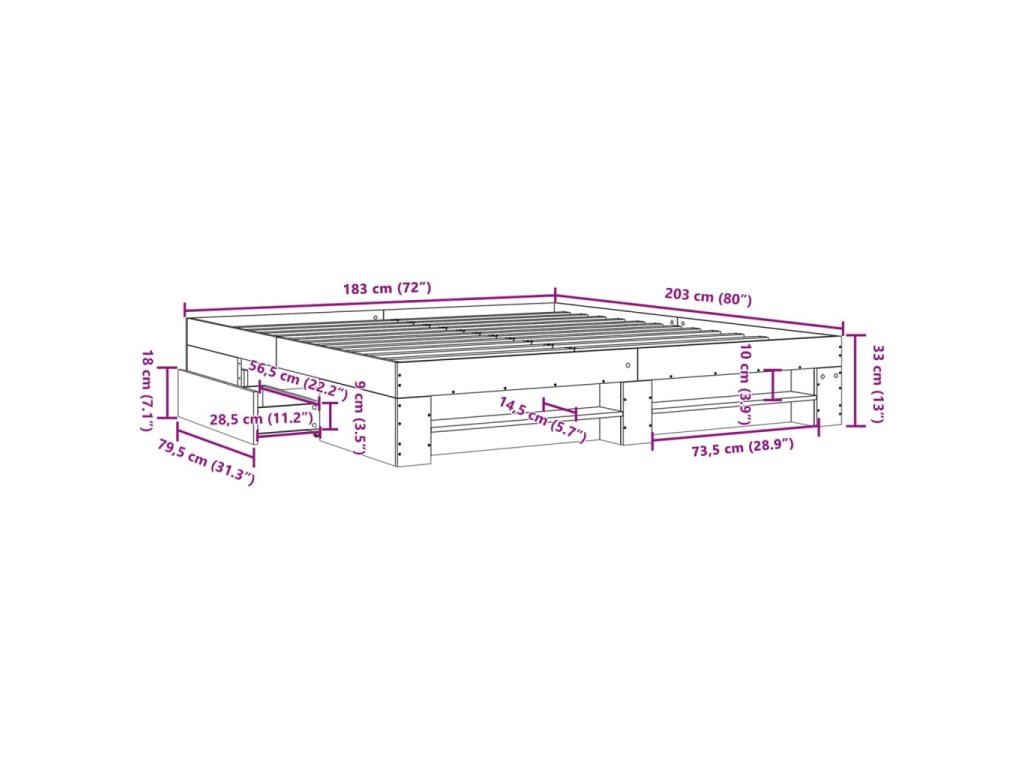- Úložná funkce: Tento rám postele je vybaven zásuvkami a otevřenými přihrádkami, které vám poslouží k přehlednému uložení časopisů, knih, hraček a dalších drobných předmětů.