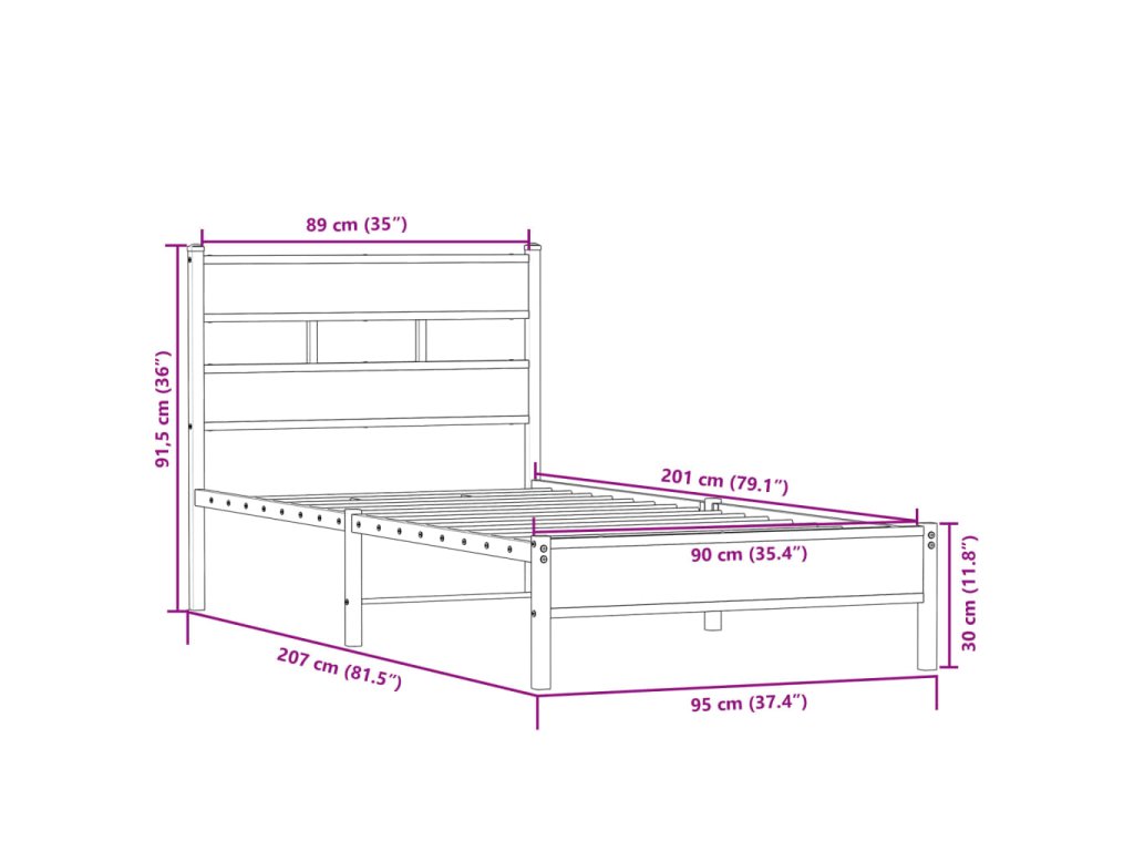 Rám postele bez matrace dub sonoma 90 x 200 cm kompozitní dřevo 4017247