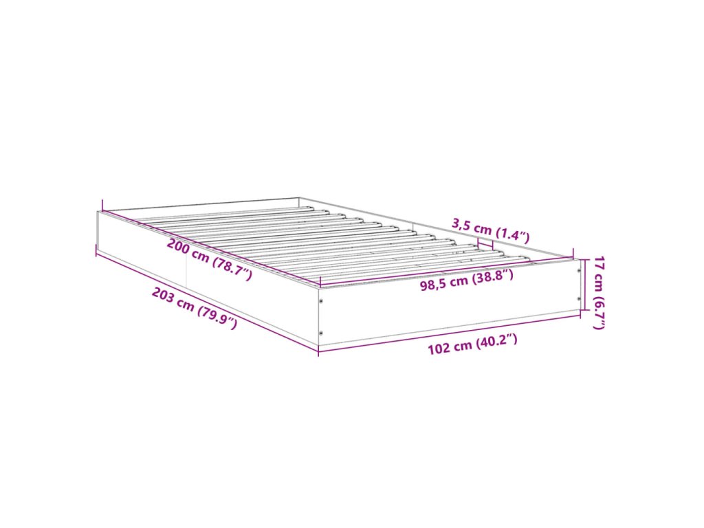 - Celkové rozměry: 203 x 102 x 17 cm (D x Š x V)