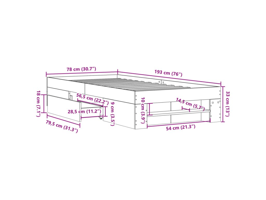 - Úložná funkce: Tento rám postele je vybaven zásuvkami a otevřenými přihrádkami, které vám poslouží k přehlednému uložení časopisů, knih, hraček a dalších drobných předmětů.