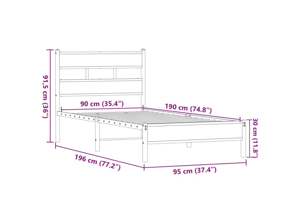 Rám postele bez matrace hnědý dub 90 x 190 cm kompozitní dřevo 4017300