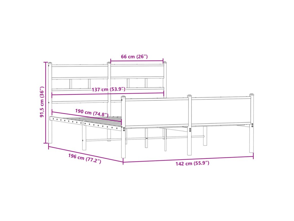 Rám postele bez matrace kouřový dub 137x190 cm kompozitní dřevo 4017235