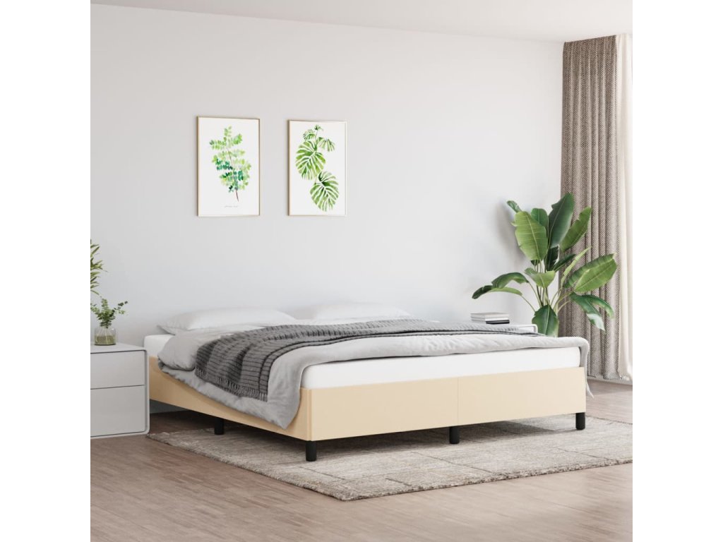 Rám postele bez matrace krémový 160 x 200 cm textil 347079