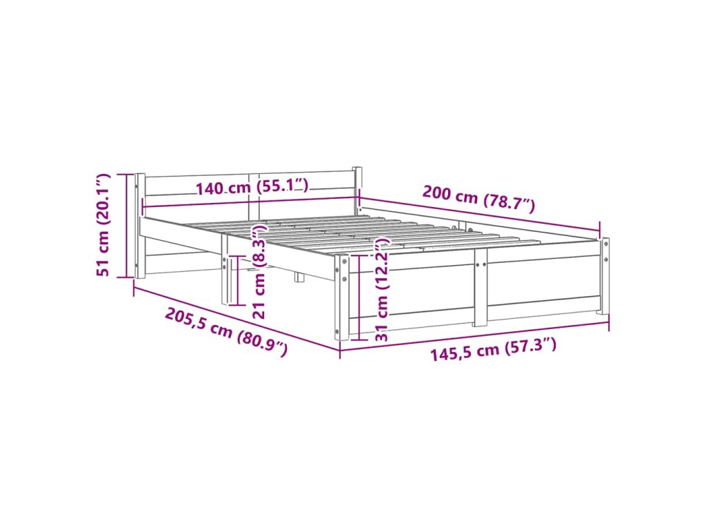 Rám postele bez matrace masivní dřevo 140 x 200 cm 815044