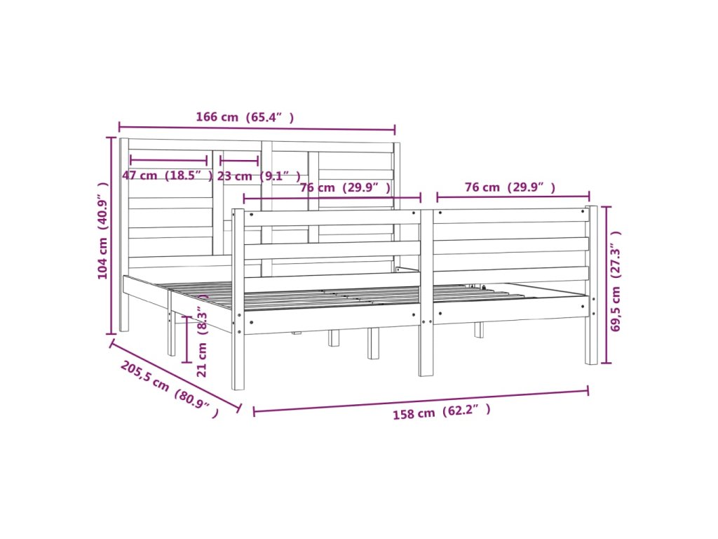 Rám postele bez matrace masivní dřevo 160 x 200 cm 3105870