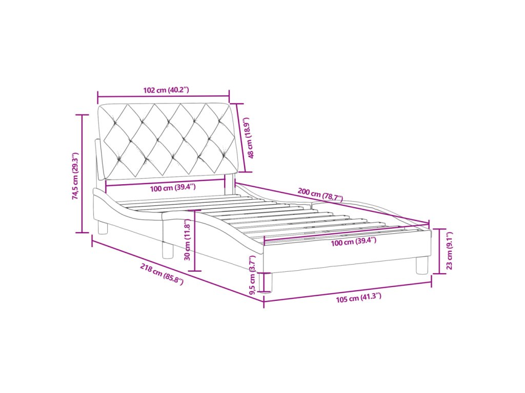 - Vhodná velikost matrace: 100 x 200 cm (Š x D) (matrace není součástí balení)